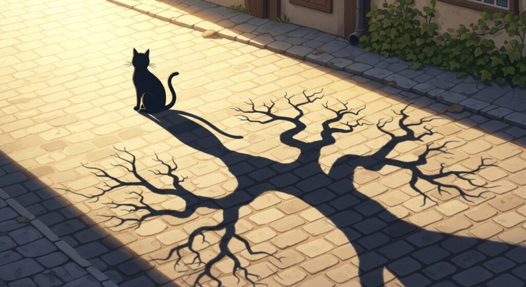 影をなくしたネコ 未完 短編 童話 あるところに、自分の影を落としてしまった黒ネコのクロがいました。 影がないクロは、まるで幽霊のようで、誰にも気づいてもらえません。困ったクロは、影を探して森へ出かけました。 森の奥で、クロは「自分の姿」を欲しがっている古い枯れ木に出会いました。「僕の影になってくれないかい?」 続きを書く コメントをキャンセルコメント ※ 名前 次回のコメントで使用するためブラウザーに自分の名前、メールアドレス、サイトを保存する。 上に表示された文字を入力してください。 関連記事 タロウとポチ 琥珀のリワード 透明な針を持つ小さな騎士 孤独な青い瞳 白いキャップの少女 真っ白な地図と「はじまりの足音」