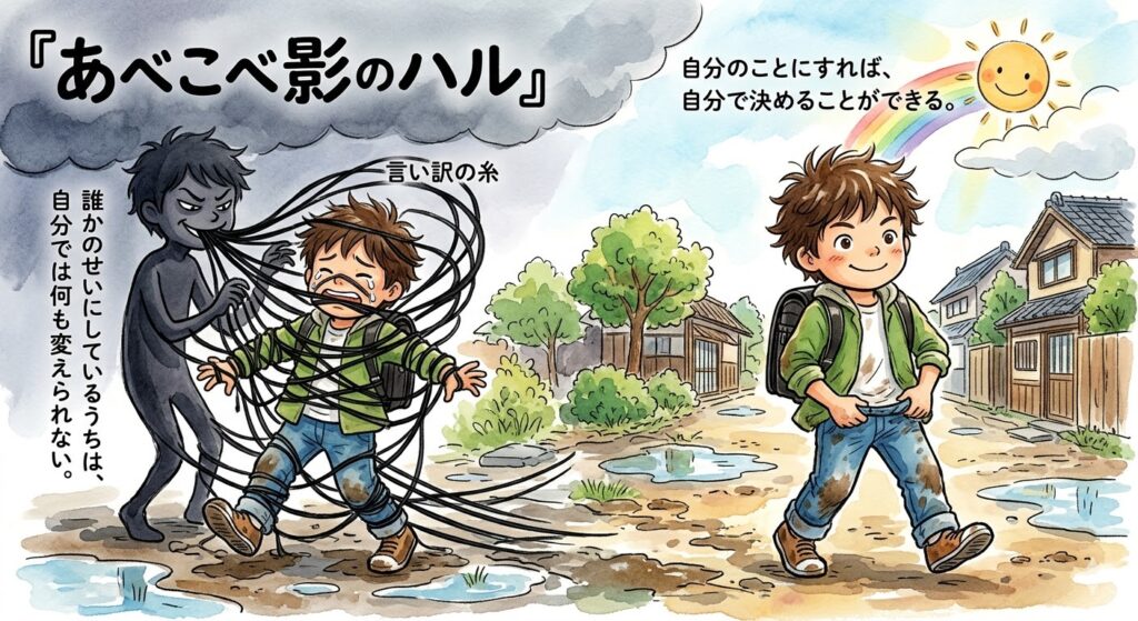 ハルは気づきました。 「自分のせい」と認めるのは、自分を責めることではなくて、「自分の手足を取り戻すこと」なんだ。 誰かのせいにしているうちは、自分では何も変えられない。でも、「自分のこと」にすれば、次はこうしよう、ああしようと、自分で決めることができる。